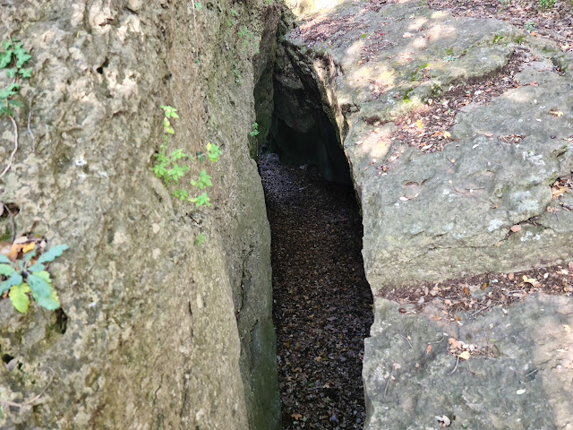 On commence ainsi sur une belle piste forestière, sur le flanc Est du Puech jusqu'à rejoindre l'Ancien Chemin de Saint-Privat. On prend alors à gauche pour passer sur le flanc Ouest, toujours sur une belle piste. On arrive ainsi à un embranchement où l'on distingue, au milieu de la végétation, une cabane en bois. On prend alors le sentier qui passe immédiatement à droite de la cabane, puis, 150 m plus loin, à gauche, toujours sur un sentier assez étroit qui devient un peu accidenté (quelques marches rocheuses à descendre prudemment).